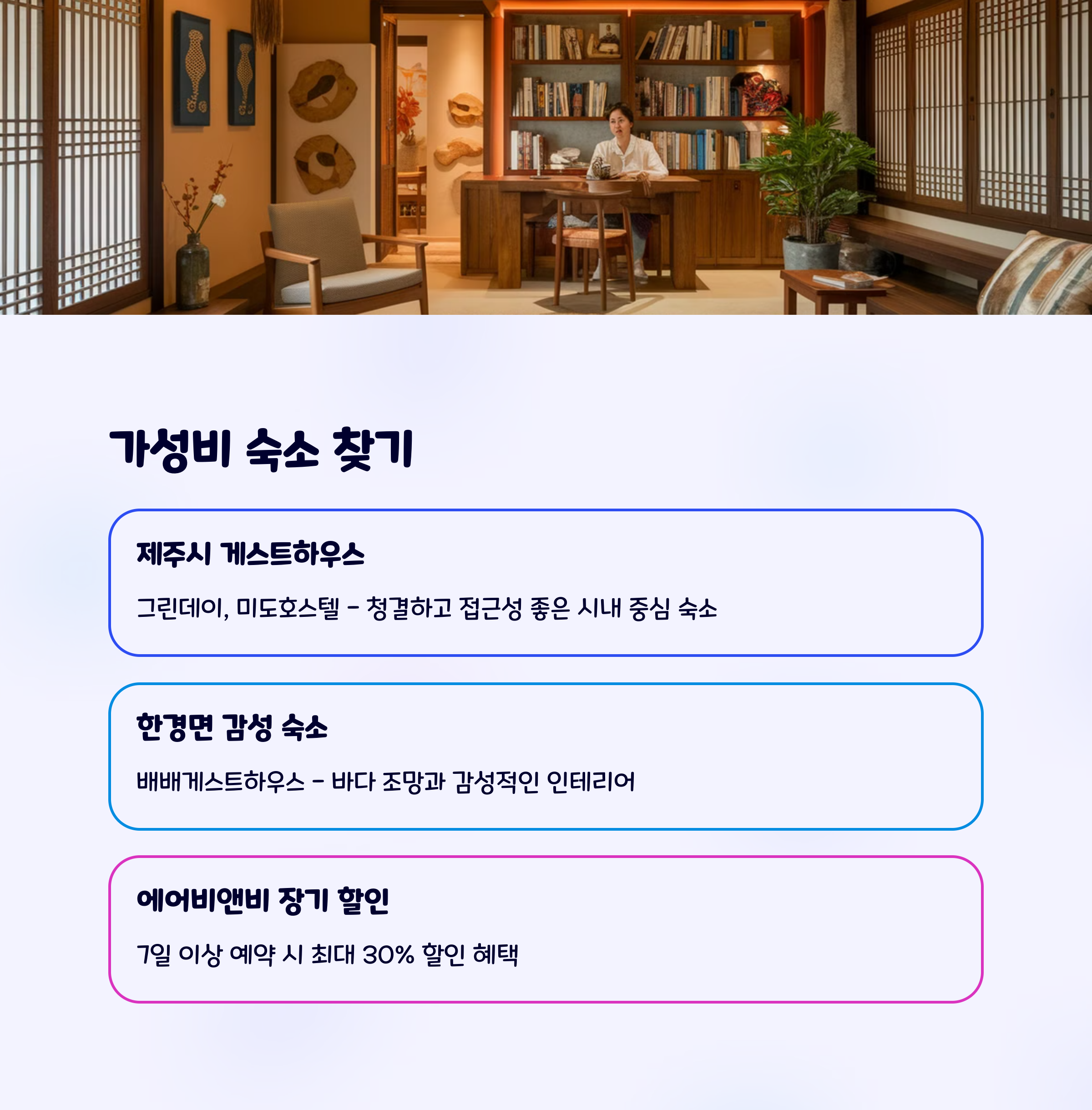 | LCC 프로모션 & 카드 혜택 | 게스트하우스 & 감성 한옥 | 올레길, 섭지코지, 애월 |