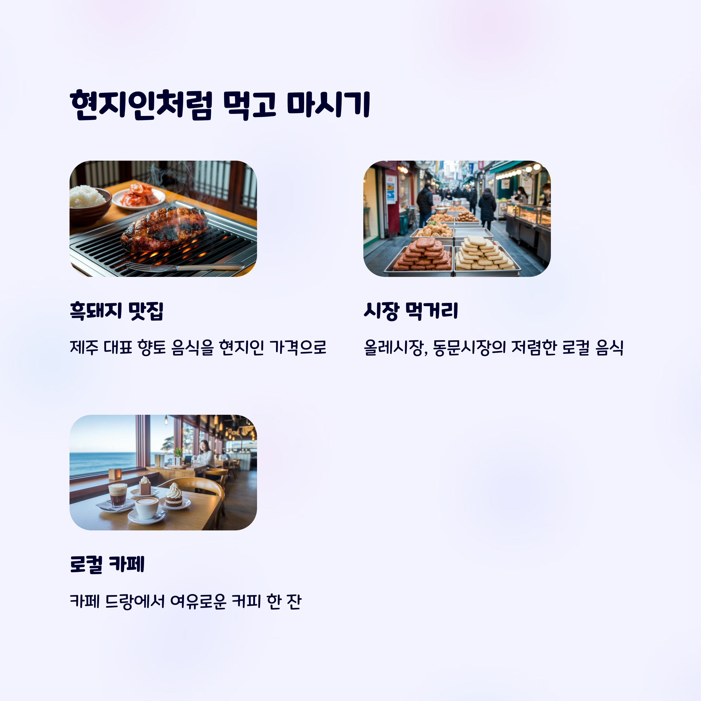 혹시 혼자 제주 여행을 다녀오신 경험이 있으신가요? 가성비 꿀팁이나 추천 장소가 있다면 댓글로 남겨 주세요! 😊 여러분의 소중한 정보가 다른 여행자들에게 큰 도움이 됩니다.