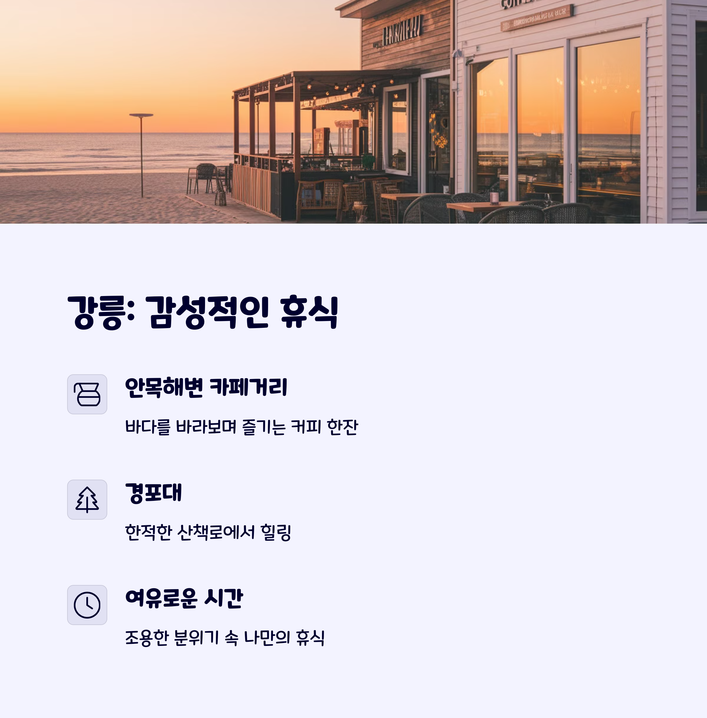 | 강릉 | 감성적인 여행, 조용한 해변 |