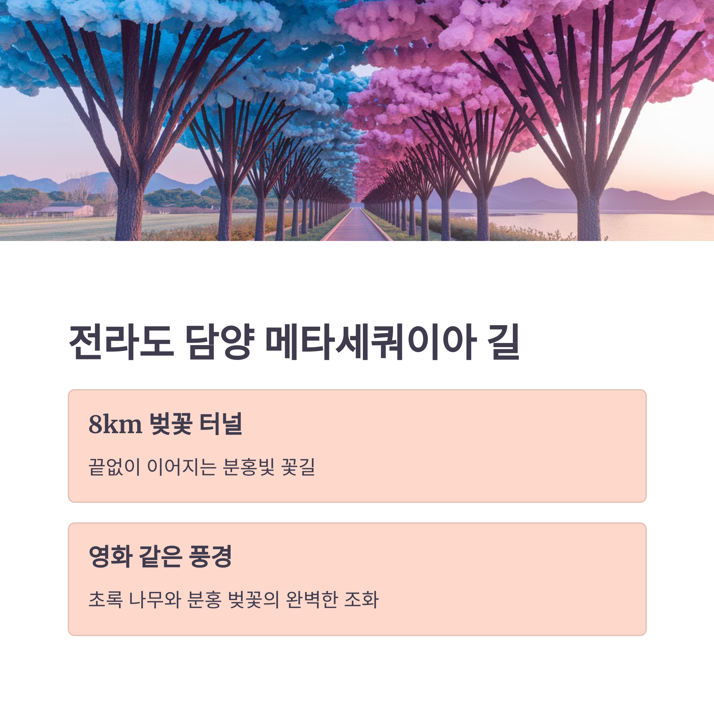 | 전남 담양 | 4월 초 | 대나무숲과 어우러진 벚꽃 |
