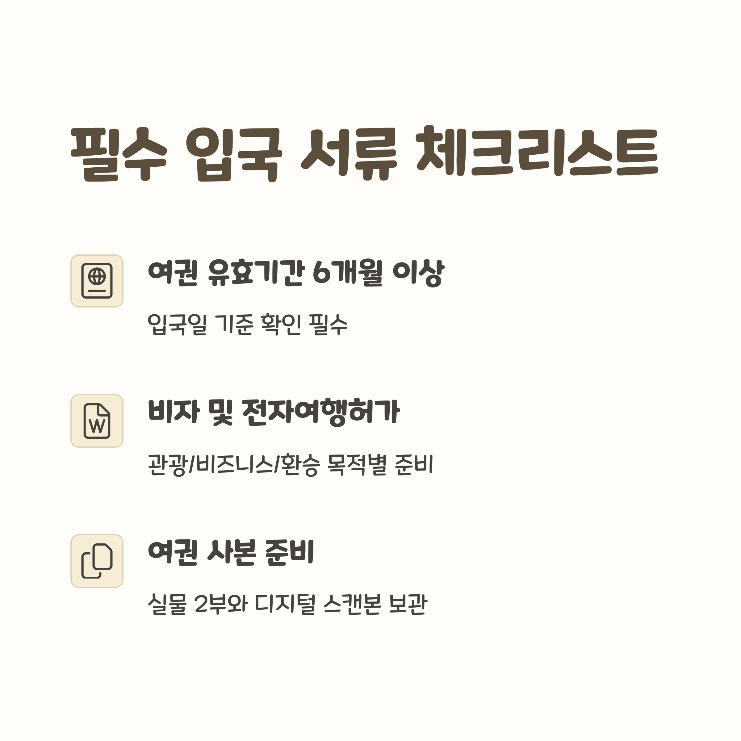 | 입국 필수서류 | 입국 거부 사례 | 서류 준비 팁 |