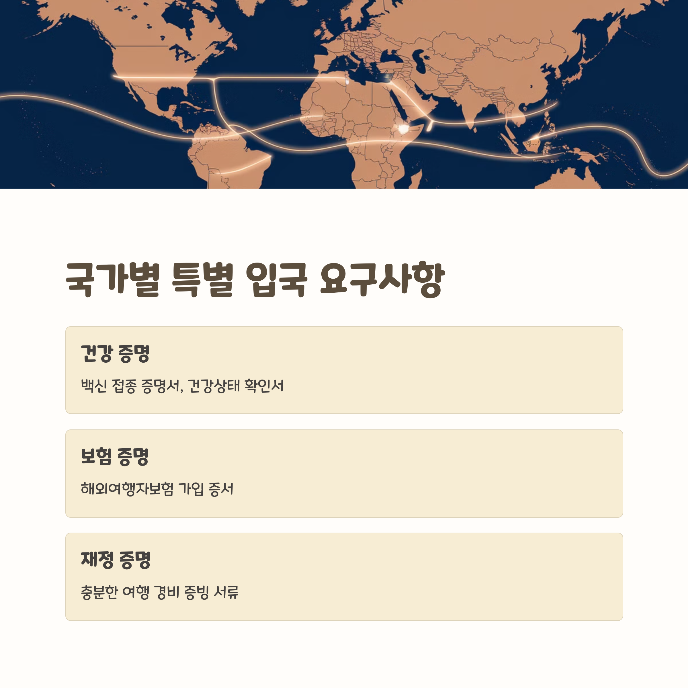 | 여행자 보험, 백신 접종 증명서 | 현금 부족, 경유국 서류 미비 등 | 목적 국가별 입국 조건 사전 확인 |