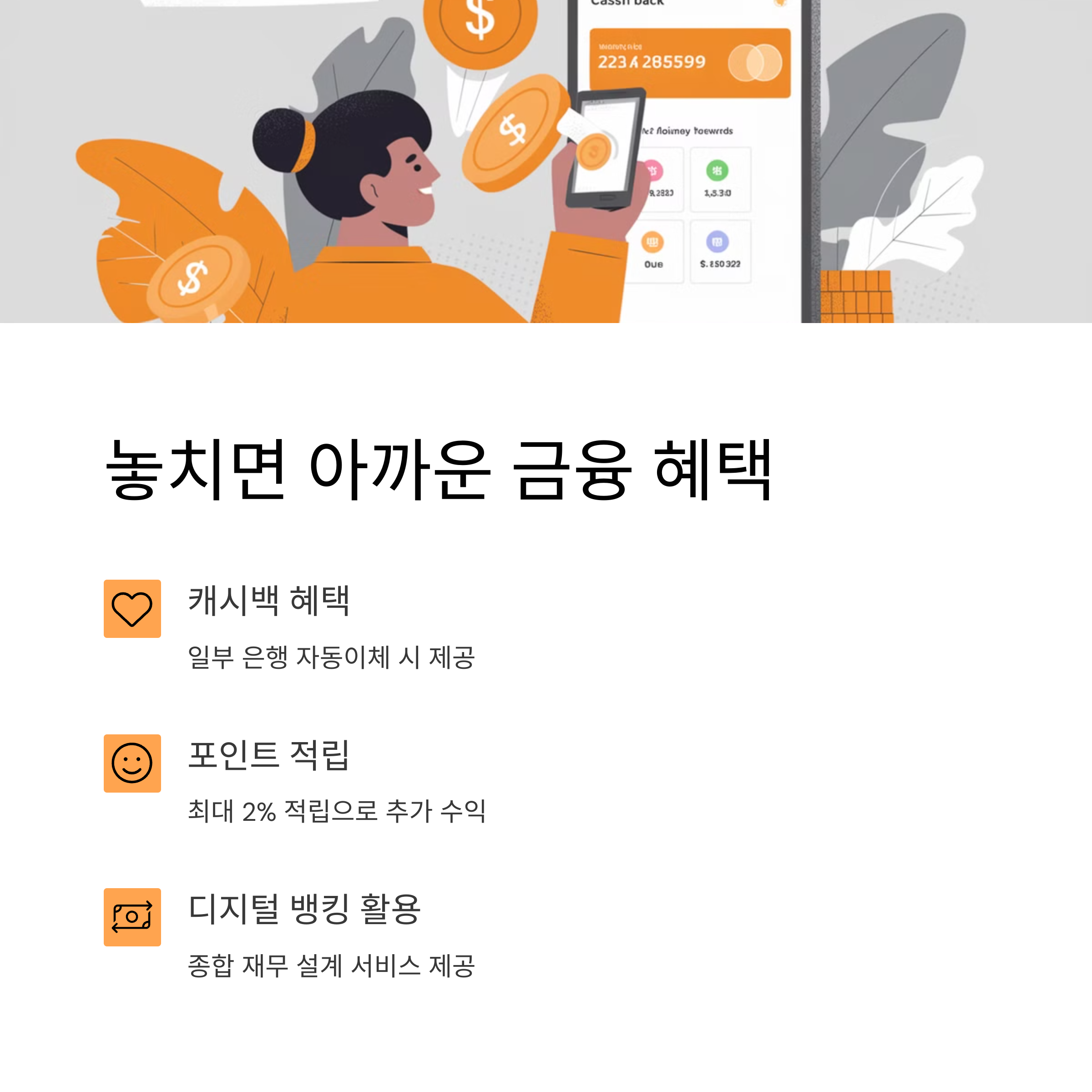 | 적용 가능한 항목 | 공과금, 적금, 투자금 등에 활용됩니다. |