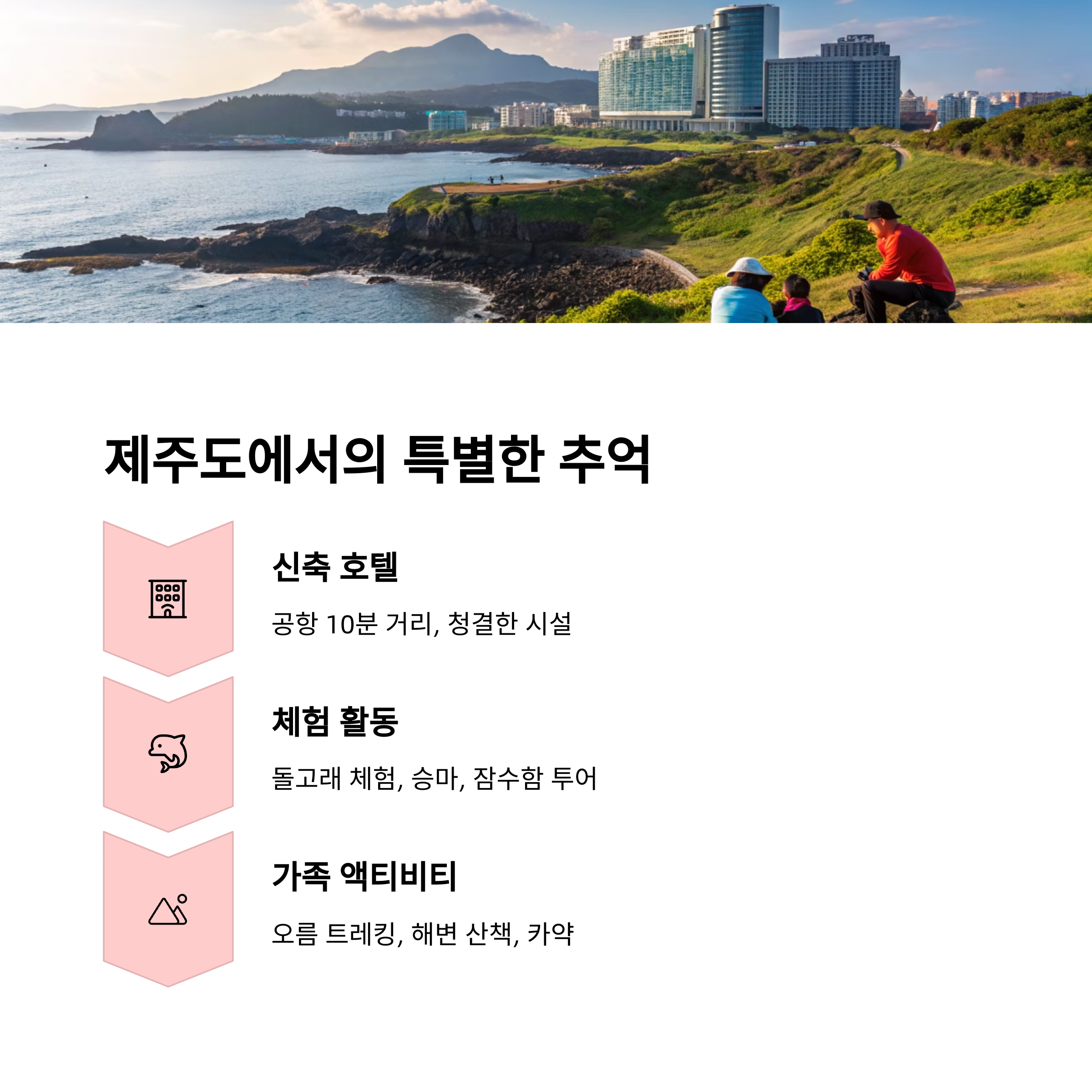 귤따기 체험, 승마, 곶자왈 트레킹 같은 활동들은 아이들에게 생생한 자연 경험을, 성산일출봉, 우도 같은 명소는 가족이 함께 감탄할만한 풍경을 선사하죠.