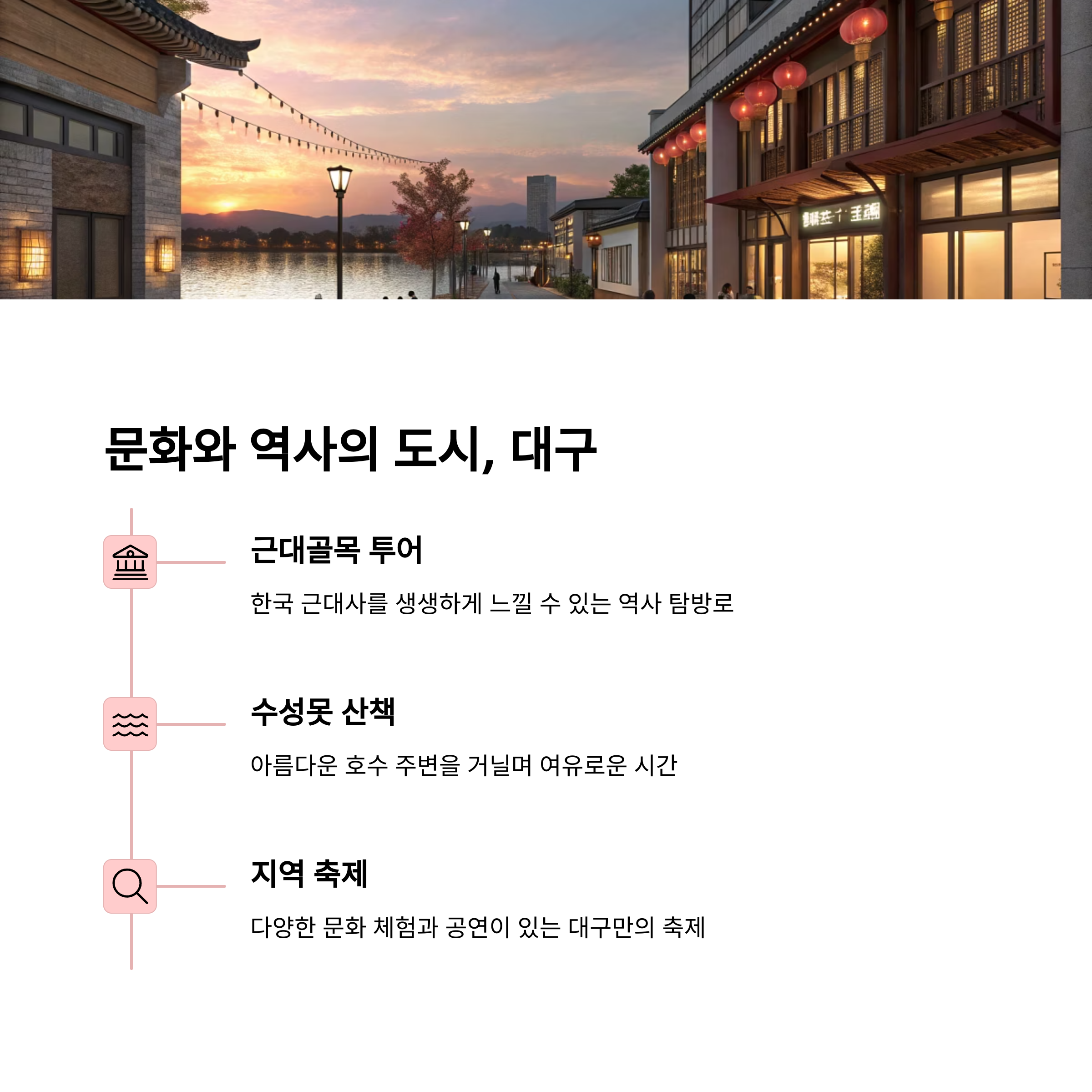 대구는 역사와 현대 문화가 잘 어우러진 도시입니다.