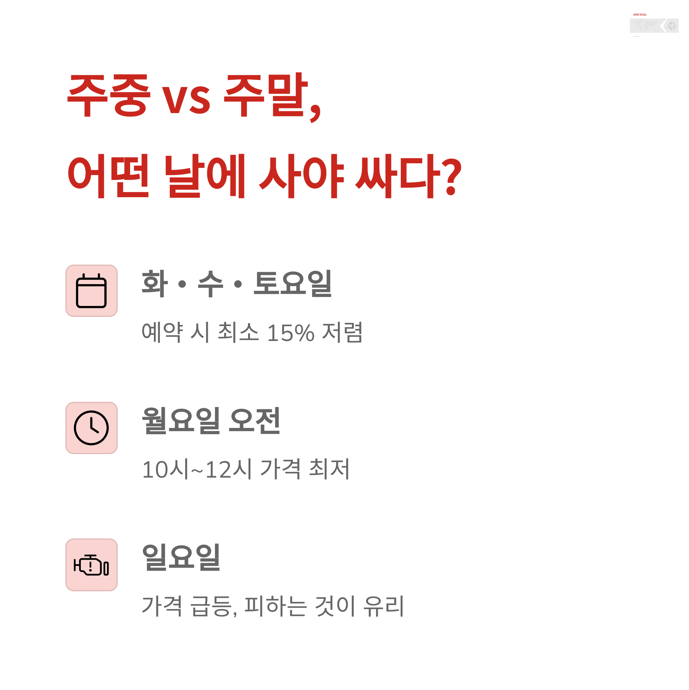화요일과 수요일이 가장 저렴한 요일로 꼽히며,