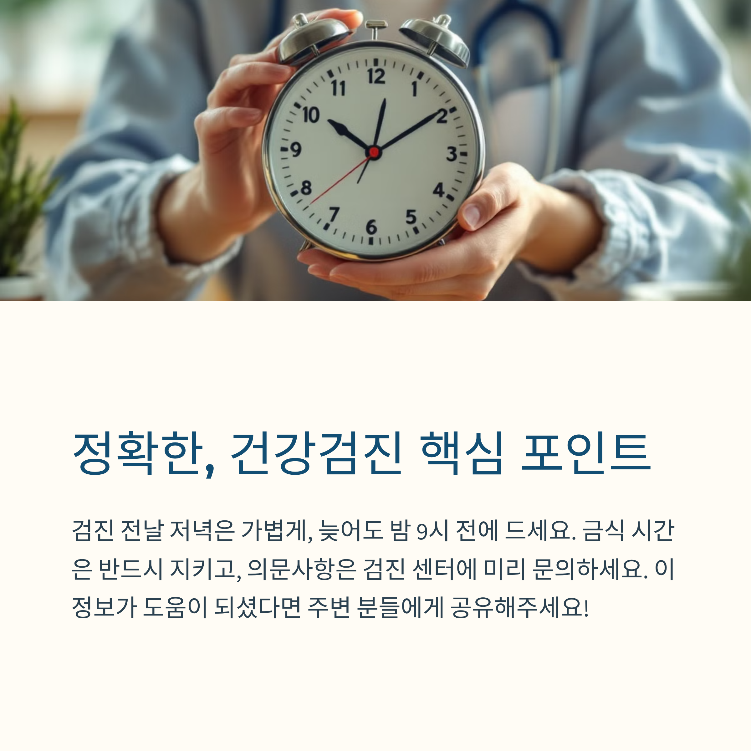 바쁜 일상 속에서도 간단한 팁만 지켜도 건강검진 결과는 훨씬 더 정확하고, 필요 없는 재검 요청도 피할 수 있습니다.
