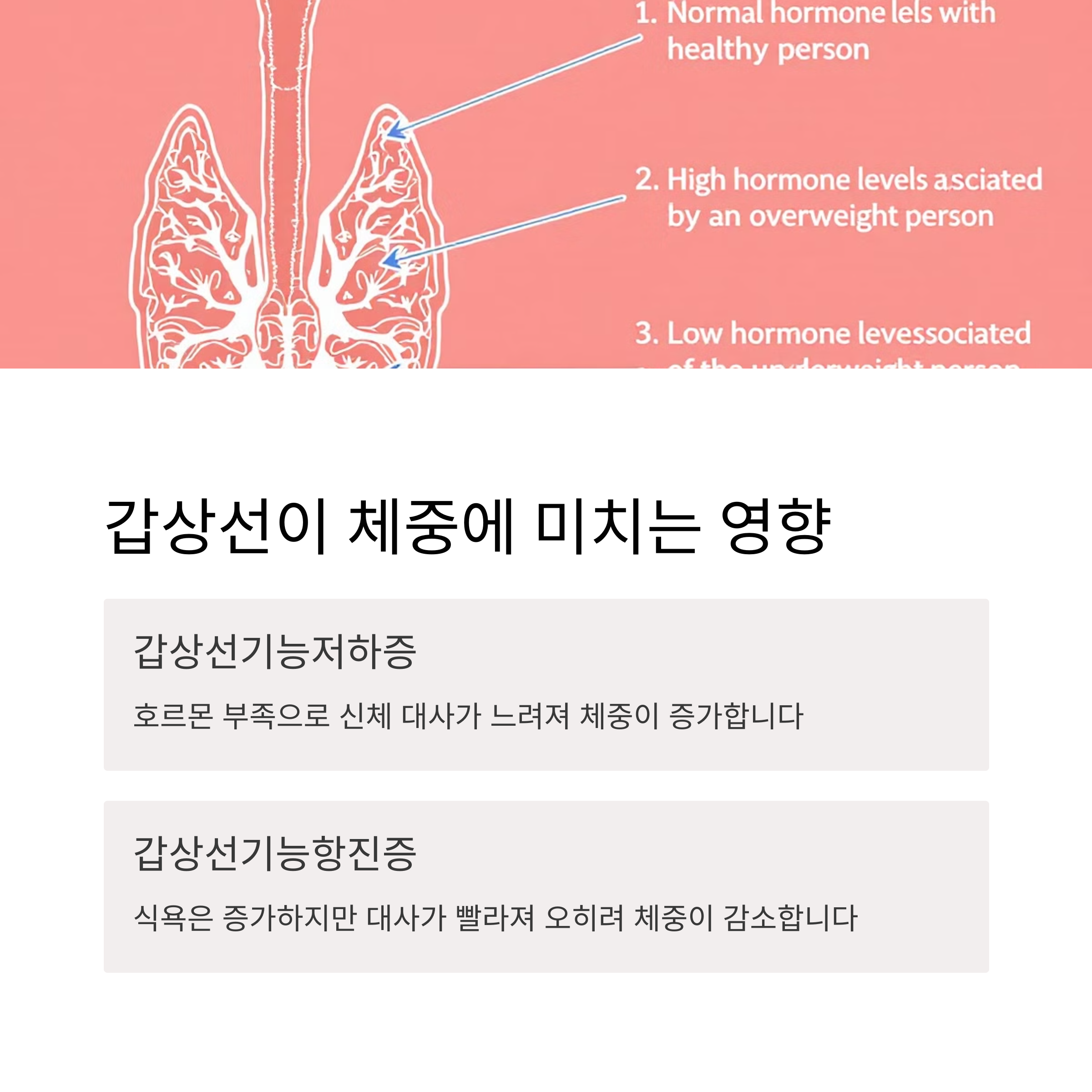 | 체중 증가와 관련된 중요한 원인입니다. | 식욕 증가와 에너지 보존 작용을 합니다. | 다양한 대사질환의 위험을 증가시킵니다. |